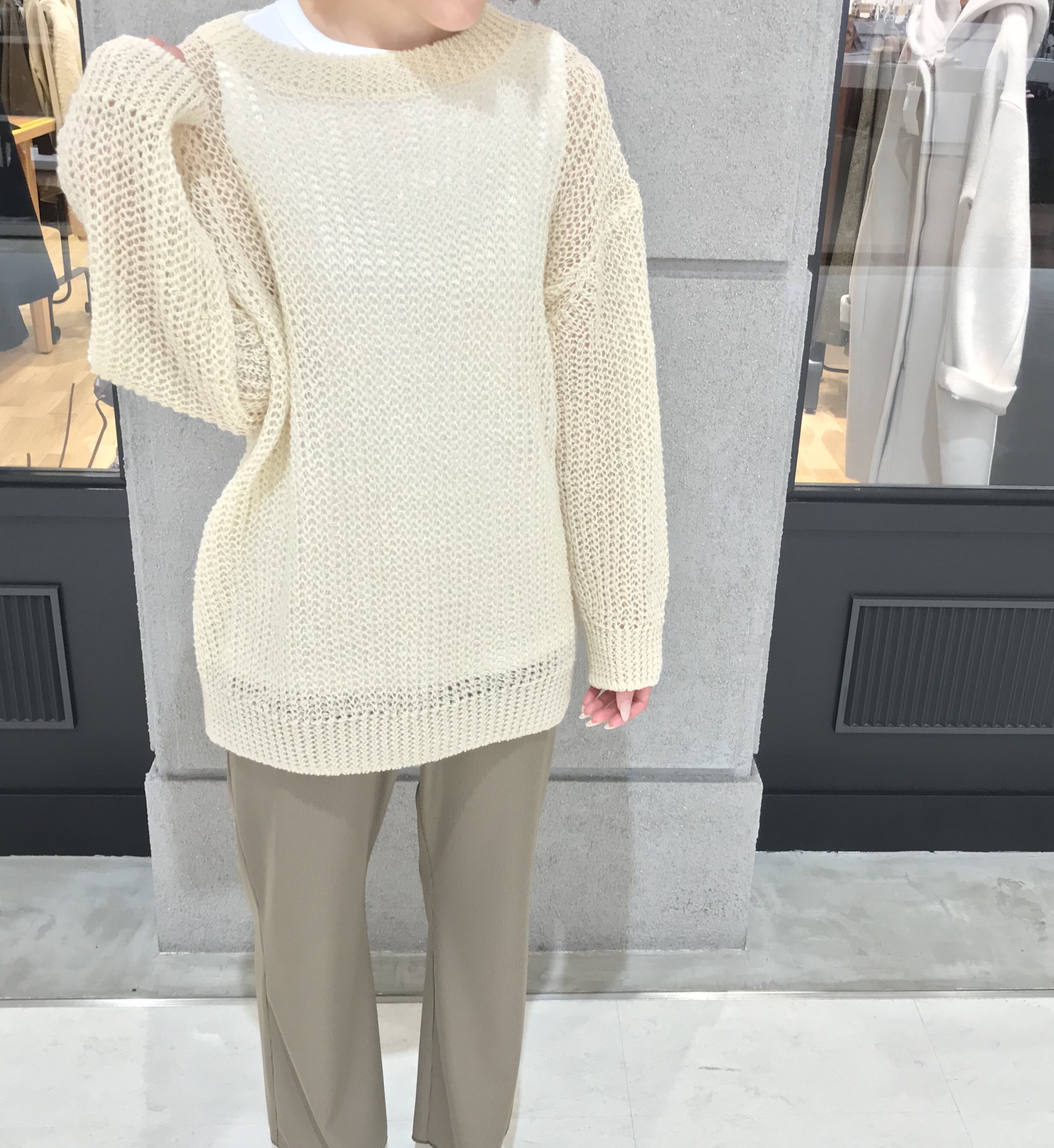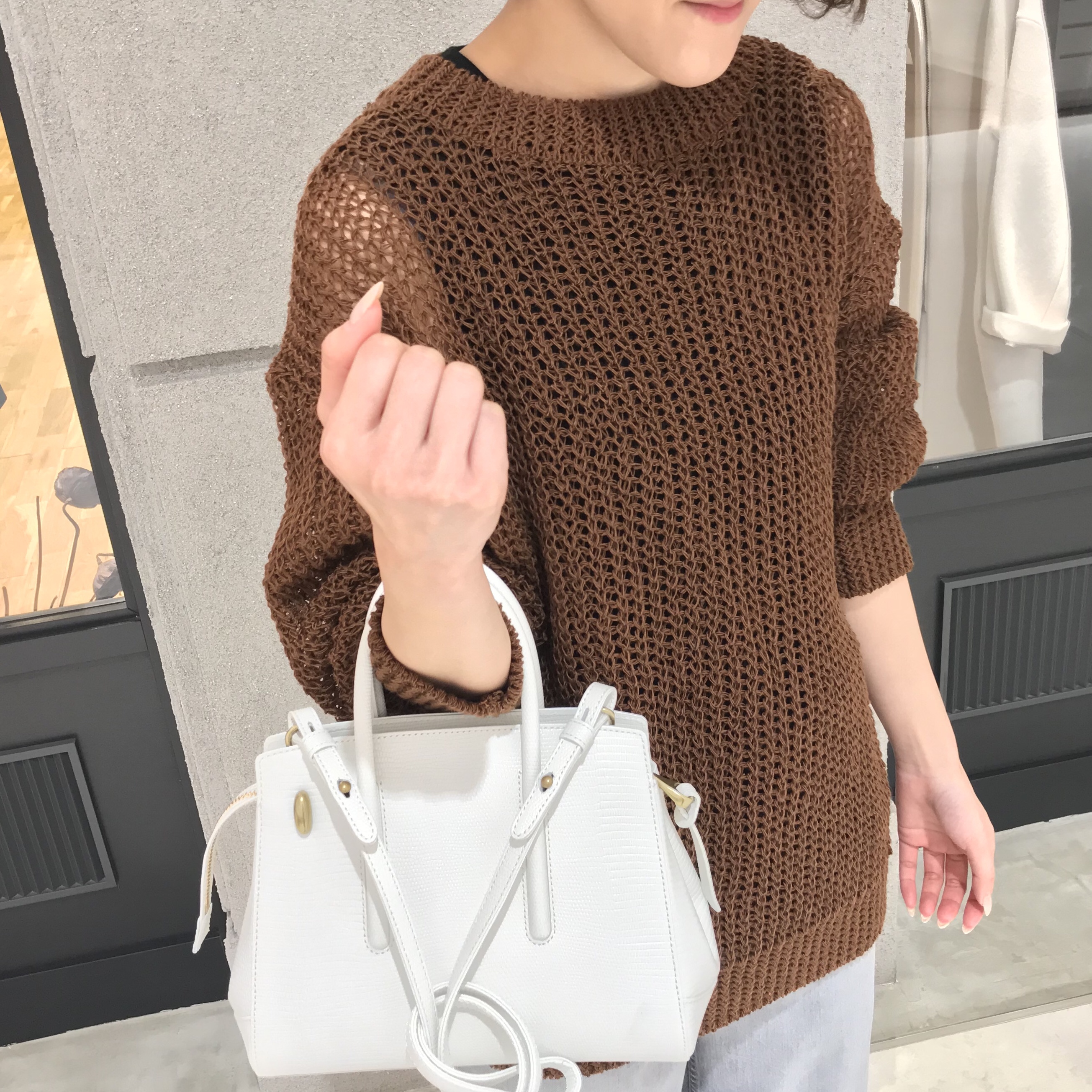 ざっくりとした編みが透け感のあるローゲージに仕上がっております。